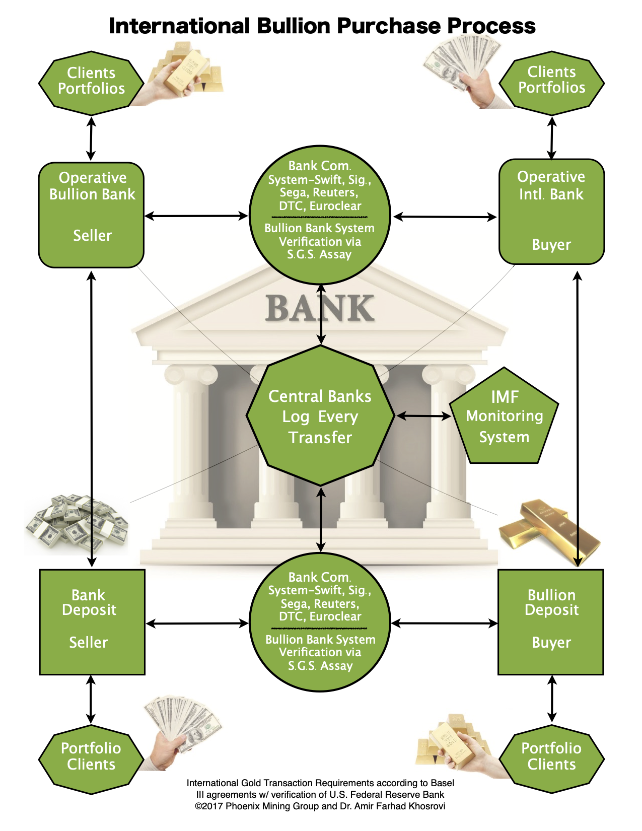 We have also had our Bullion Flow Chart (below) of business activity for Gold to Currency transactions reviewed and approved by the Federal Reserve Bank of the United States, as our method of operations insure correct administration of Gold/Currency transactions through the Banks, and Central Banks of both the Seller’s and Buyer’s countries.
